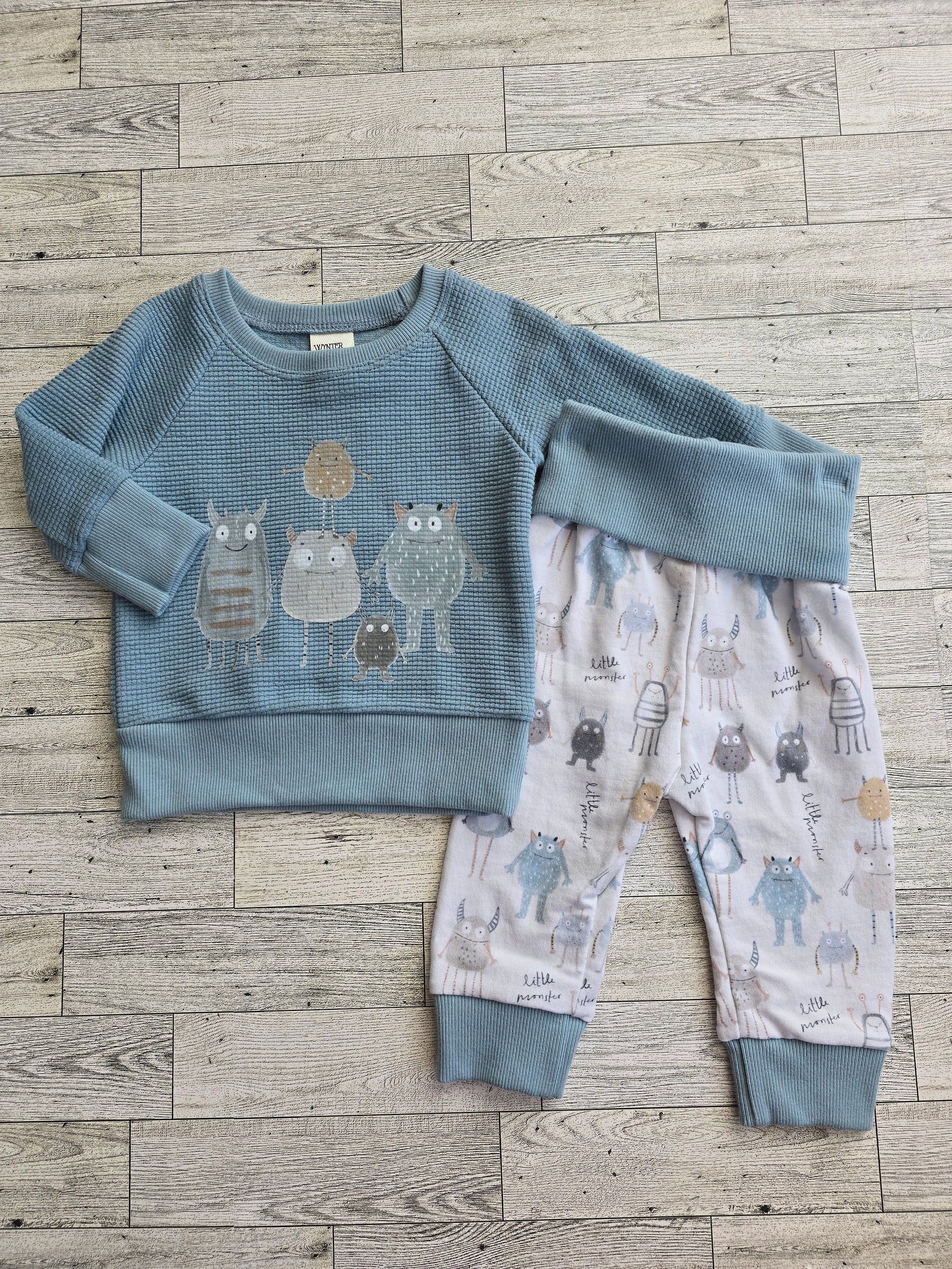 Soft and cozy, this is the perfect set for your Little Monster to wear all day long! This top features raglan sleeves, a crew neck, wrist cuffs and a waistband. Pairing perfectly with the cozy sweat pants.