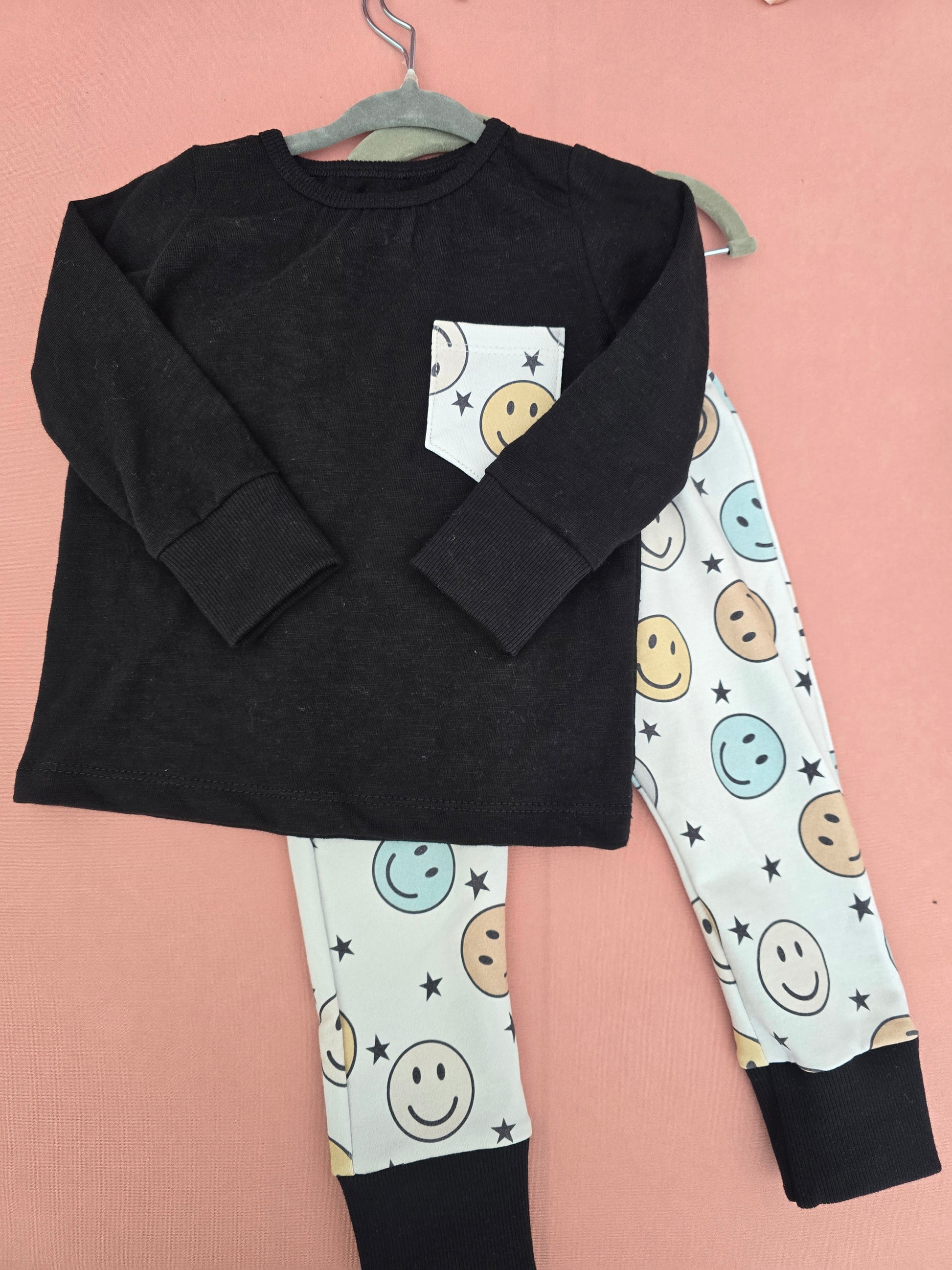 This set is the perfect addition your little one's wardrobe! The shirt features a relaxed fit with long sleeves, a crew neck an adorable pocket. Paired with harem style pants, this set will become a staple!